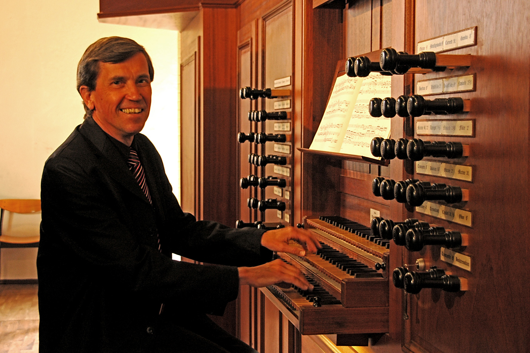 Dieses Konzert gibt einen Überblick über 5 Jahrhunderte Orgelmusik. Angefangen vom norddeutschen Großmeister Buxtehude geht es über drei Werke von Bach, darunter die großartige c-Moll Passacaglia, in die Romantik und Moderne. Neben zwei Werken von Mendelssohn sei besonders auf das Hochzeitspräludium von Johann Strauß Sohn hingewiesen, dessen 200.Geburtstag in diesem Jahr überall begangen wird. Er komponierte es anlässlich der Trauung seiner Stieftochter ursprünglich für Harmonium, Harfe und Violine. Es zeigt den Walzerkönig von einer ganz anderen und introvertierten Seite. Diese Werkübertragung des „Königs der Walzer“ auf die „Königin der Instrumente“ hat dabei ihren eigenen Reiz. Den Anschluss des Konzertes bildet dann eine eigenwillige und schwungvolle Reminiszenz an die berühmte Bachsche d-Moll Toccata.